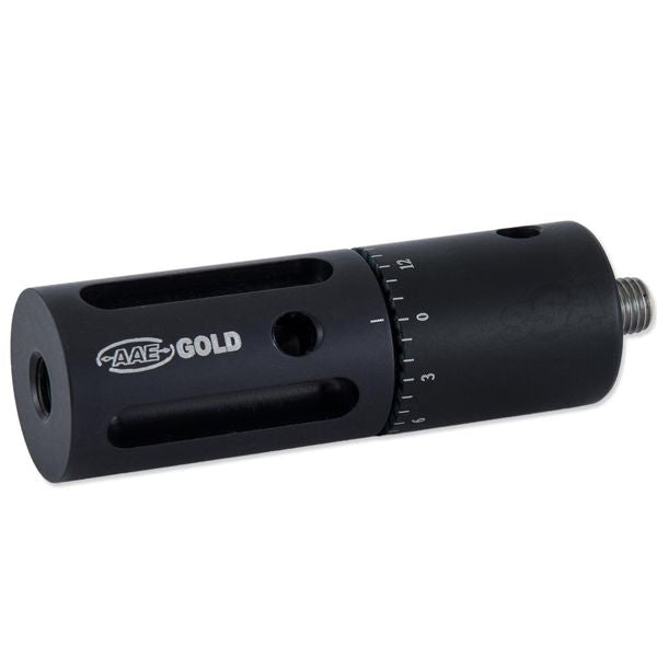 The Gold line Extension is the first extension of its kind to use AAE's proprietary two piece articulated body design that features a Compression Spacer and tensioning bolt. The Compression Spacer was specifically designed to reduce vibration and feedback while the articulated body maintains stabilizer systems effectiveness. The Gold Line Extensions tensioning bolt allows the archer to fine tune the articulated body pressure on the Compression Spacer to set the desired tune and feel resulting in tighter groups and a more consistent tune.