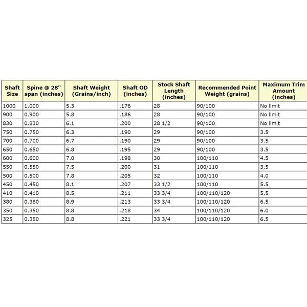 Weight - Due to the barrel design of the X10, the weight is and average grains per inch of a 29in shaft. Shaft weight is slightly heavier in the larger diameter centre and lighter towards the tapered ends. One inch of shaft cut from the point end typically weighs 6-7 grains.