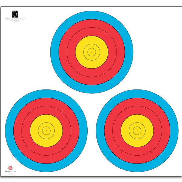 40cm face - Scoring zones 10-6 with X ring. Reinforced paper for longer use life. Scoring zones from 6-10. Inner 10 / X-ring. 20cm, three spot size. As used for FITA indoor rounds and Vegas / NFAA tournaments. Bulk pack of 250 faces....