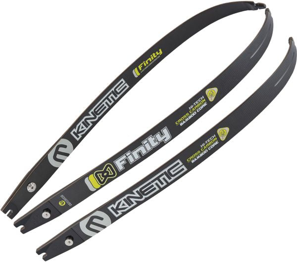 The Finity is the new top end limb from Kinetic. Constructed from high strength cross carbon around a layered superior bamboo core. The result is a smooth, light weight and fast limb. Advanced design, slim shape, durable, high performance, high speed and high precision. The latest advanced design of the limb tips makes the initial release speed faster. Finished with a new design stainless steel limb bolt. International Limb Fitting (ILF)....