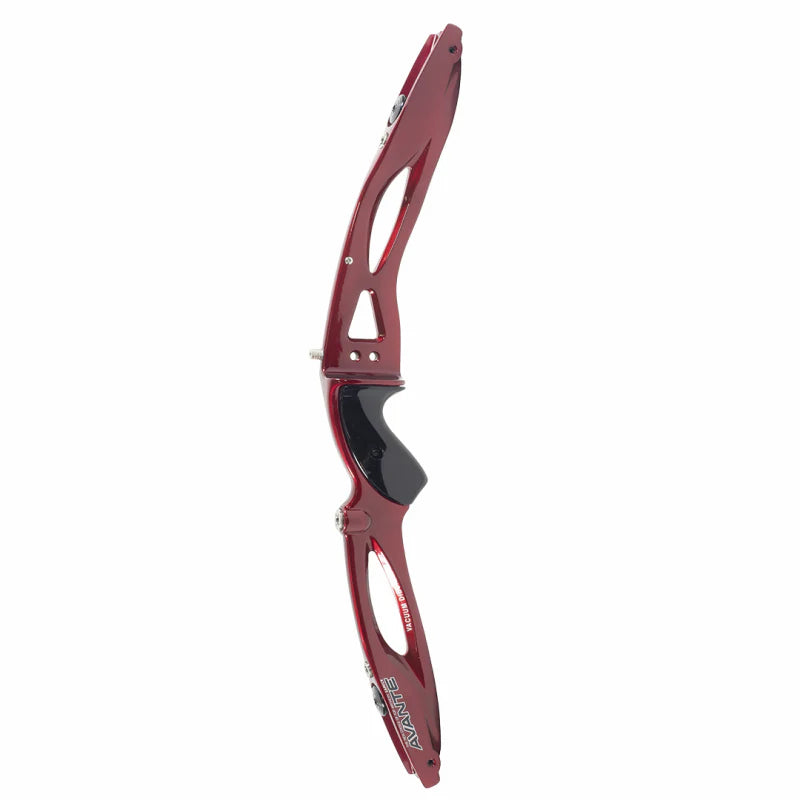 The stunning looking Avante is a perfect 25 inch recurve riser at a great price. Featuring an ergonomic bow design with a vibration damping device in the limb pockets protects the archers wrist and arm. The design carries a great combination of performance and appearance. The bow can be easily centered with a tiller adjustment that adjusts side to side as well as up and down. RH models only. 1220g mass weight. Aluminium CNC die cast riser with plastic grip. International Limb Fitting (ILF)....
