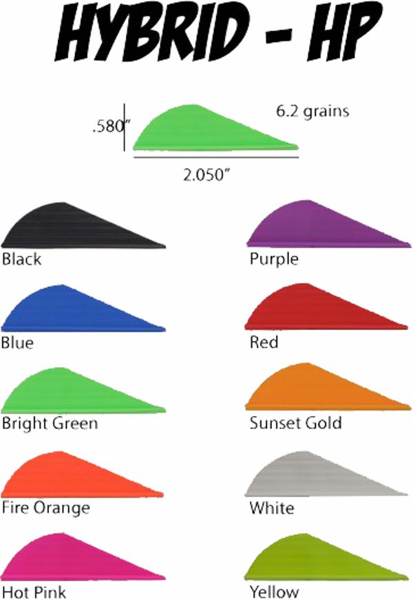 AAE Hybrid vanes are made out of the same flexible material as AAE Elite Plastifletch but also features the ultra-stable, air-channeling ribbed design the MAX vanes are famous for. Hybrid HP size is 2.05in length x 0.5in high. 6.2 grains....