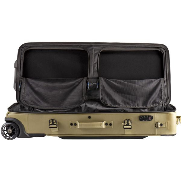 Recurve trolley case. Dimensions 98 X 40 X 30cm. Weight 7.3kg. Reinforced casing for better protection. Outer shell material consists of 1680D Nylon with clear TPU coating fabric, making it water repellent and tear resistant. Two internal mesh pockets to store your gear. Straps dedicated for your stabilizer. Soft divider makes it possible to store two bows. Multiple front pockets for all your daily items and accessories. Buckle straps and TSA approved lock to secure your gear while travelling. With 2 oversized wheels for easy transportation.