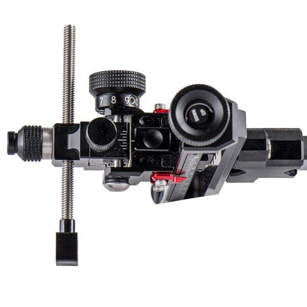 Recurve sight with a carbon extension arm. Black colour. Supplied with an 8-32 threaded sight pin and a soft case.