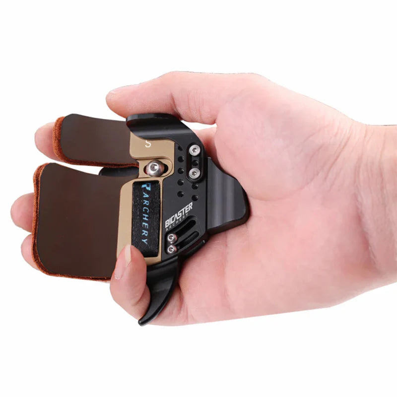 The BICASTER LOG Finger Tab Cordovan is designed for archers seeking a tailored fit. Its modular components and ergonomic design allow for adjustments to match individual shooting styles.