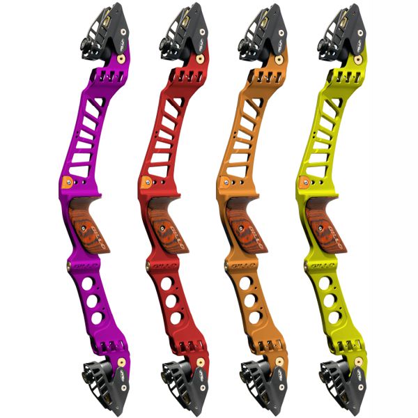 Recurve aluminium milled riser with new Tunnels design for accepting round balancing plugs (included). Dual colour anodized finish. ILF - International Limb Fitting. Features Gillo floating limb pockets for more than 40% poundage adjustment range. Integrated vibration reduction system. Stainless steel limb bolts. Wood laminated advanced grip. Riser sleeve included. Compatible with G1 and G4 barebow weights. Mass weight 1440g.