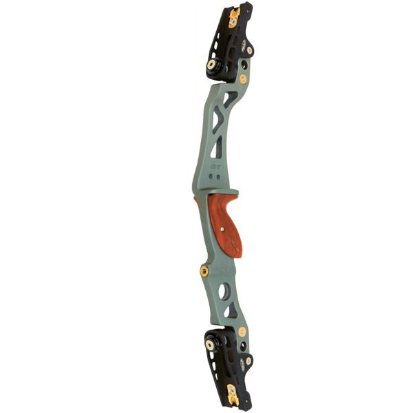 Formula limb fitting model - The GT riser series has expanded to cover the range of Hunting risers from Gillo. The old G5 Ghost model has been replaced by the GT 23in, 21in Formula and the GT 21in, 19in ILF models. The unique GT floating limb pockets allow over 30% poundage adjustment range without any compromise to the stability of the limbs. The GT 23in Hunting risers are available in RH models only in Black/Military Green and Black/Grey matte anodized colour options and are supplied with the attractive root colour wood grips as standard.